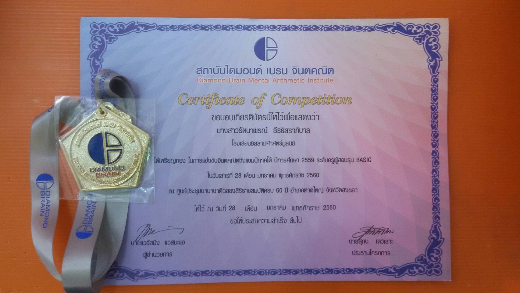 ได้เหรียญทอง ในการแข่งขันจินตคณิตชิงแชมป์ภาคใต้